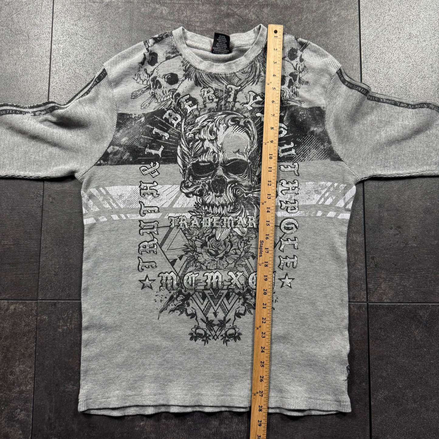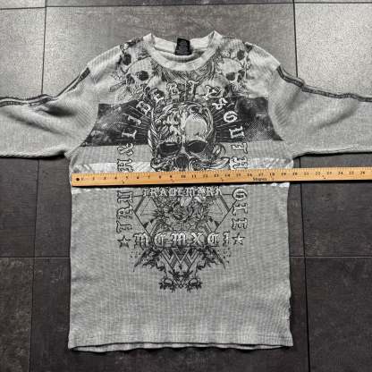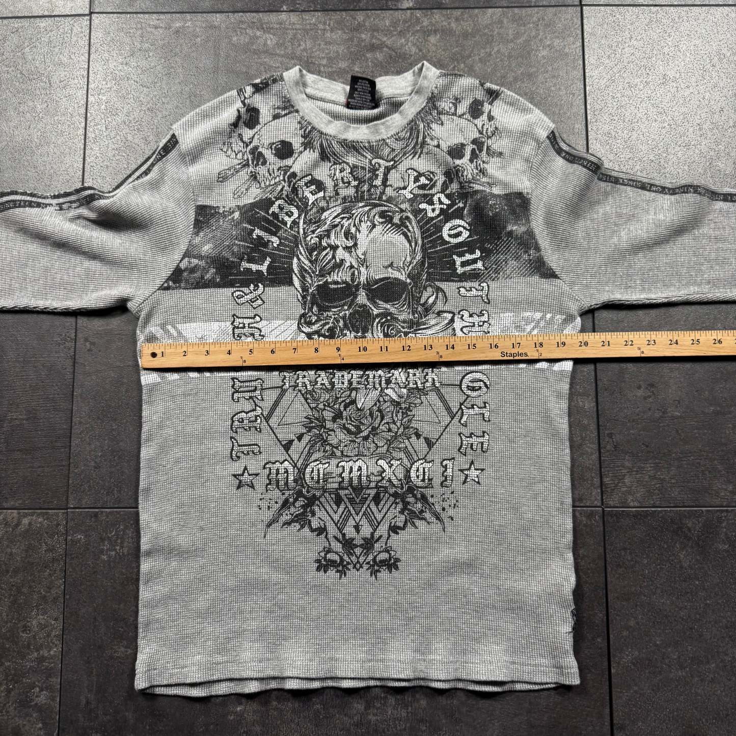 Every item has been washed before listing. With vintage clothing, tagged sizes aren’t always true to fit — we size each piece based on actual measurements. Small flaws can exist with vintage garments; we do our best to document any major imperfections in the listing. Orders ship within 48 hours of purchase. All sales are final