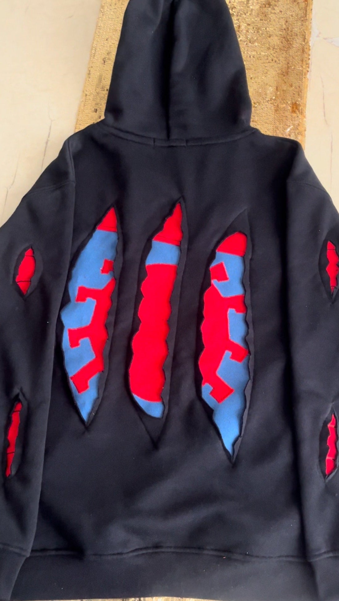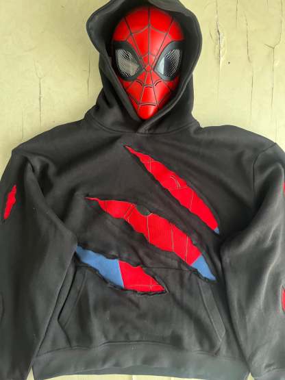 Handmade Battle-Damaged Spider Hoodie with back design.