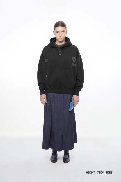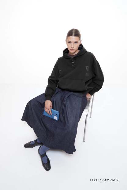 Introducing the Hongdae hoodie in black color. We traveled to South Korea to bring our Fall Winter 2025 collection to life—a collection inspired by one of Seoul’s most creative and dynamic neighborhoods.