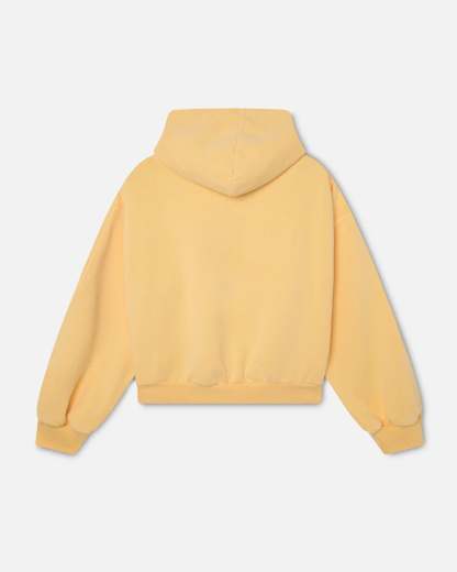 Generously sized for comfort, featuring drop shoulders and a spacious kangaroo pocket. Made from 100% pre-shrunk, reactive-dyed cotton with durable construction features, it provides enduring color and a laid-back street style. Ideal for layering. Note that this hoodie features a clearly defined shoulder seam positioned above the shoulder, with stitching running continuously through the sleeve to just above the wrist. This creates a structured drop-shoulder, allowing the sleeve to follow the arm’s contours without excess wrinkling, sharpening the silhouette for a clean, non-bulky look.