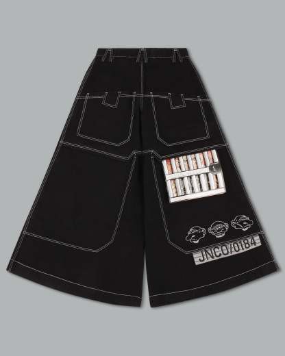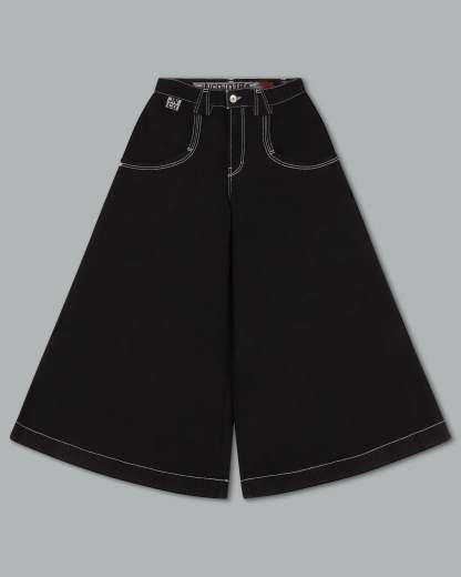 A rare icon from the FIVE-0 Series. Jet Black denim, 50' bottom opening. 13oz rope-dyed cotton with a waxed finish. Features the Mugshot embroidery, heavy contrast stitching, extra-long pocket, and wide belt loops. All original labels and collectible double-sided flasher attached. Limited Edition – very Limited Stock.