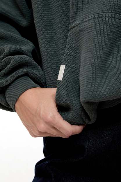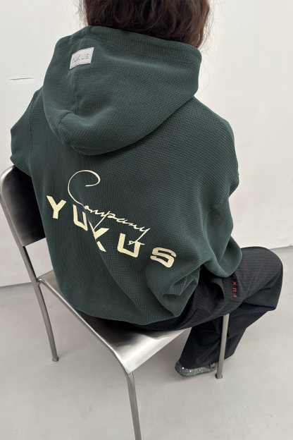 From the LE CLUB collection — introducing the waffle hoodie in green, a refined expression of the Yuxus summer. Lightweight, thoughtful, and built with intention. Where texture meets ease, and detail speaks softly.